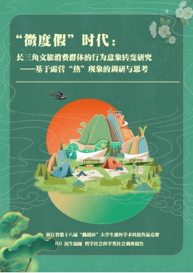 由李健教授、徐达副教授、校团委书记魏玲玲指导,研究生林洲羽、韩仁杰、王庆、黄鑫、仲一舟、陈超怡、曹佳妮、倪金琛、蔡域、俞雯靖参与的项目“微度假”时代:长三角文旅消费群体的行为意向转变研究——基于露营“热”现象的调研与思考荣获浙江省第十八届“挑战杯”老员工课外学术科技作品竞赛银奖。
