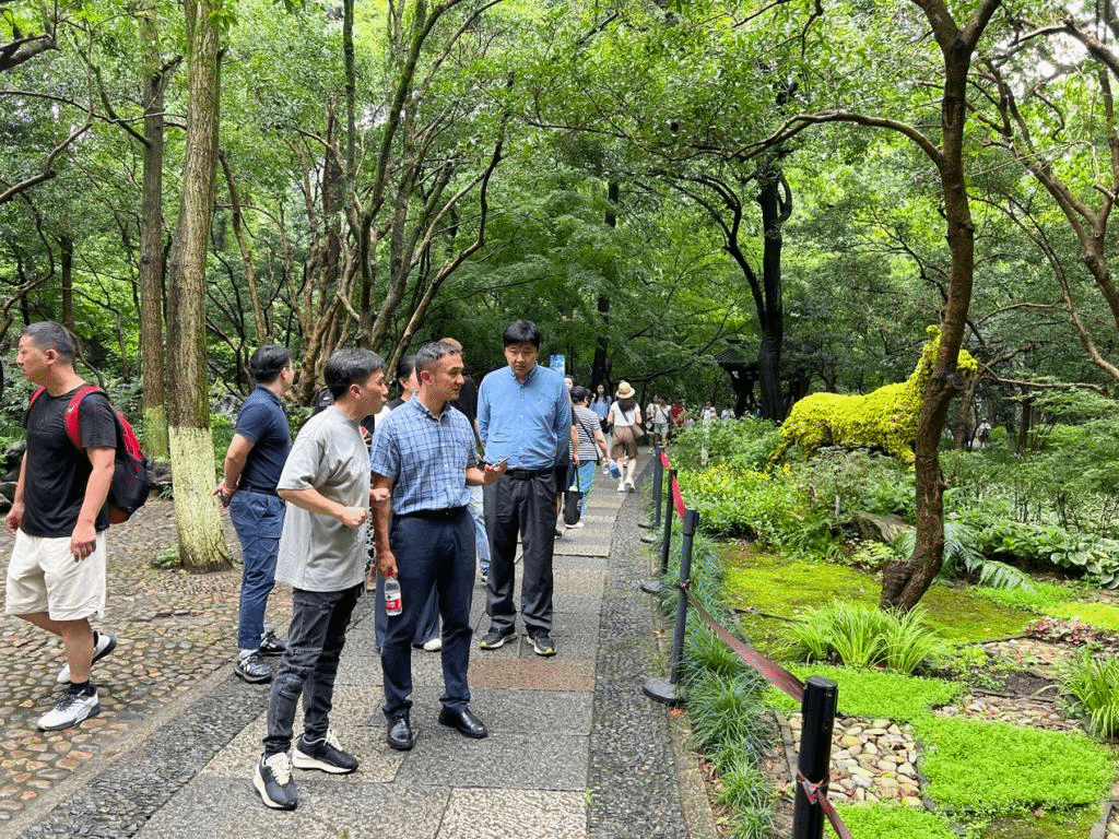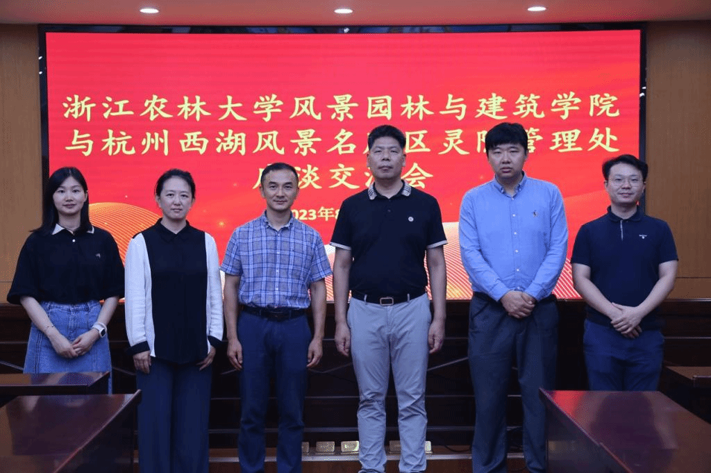 灵隐管理处主任丁水龙介绍了灵隐管理处的整体概况、特色优势。党委书记陈审声介绍了公司整体情况,并表示双方在西湖-灵隐-飞来峰文化景观、植物新品种培育、病虫害防治及应用推广等方面契合度高。双方今后将在人才培养、研学合作、社会实践、基地建设等方面进一步加强合作。