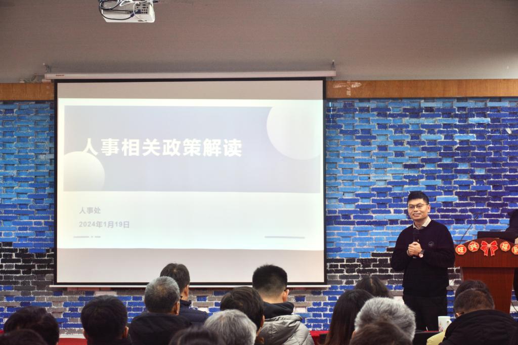 人事处张路副处长对事业单位工作人员考核规定、教职工因私出国境、教师兼职创新创业等政策进行了详细分析。他分析了年度考核与聘期考核的不同点,对考核内容、考核方式、考核结果进行了解说。对于教职工因私出国境事宜,他明确了登记备案人员范围、审批流程、证件管理及违反处分等细则。在教职工兼职创新创业方面,他分享了政策背、备案程序和相关管理规定。