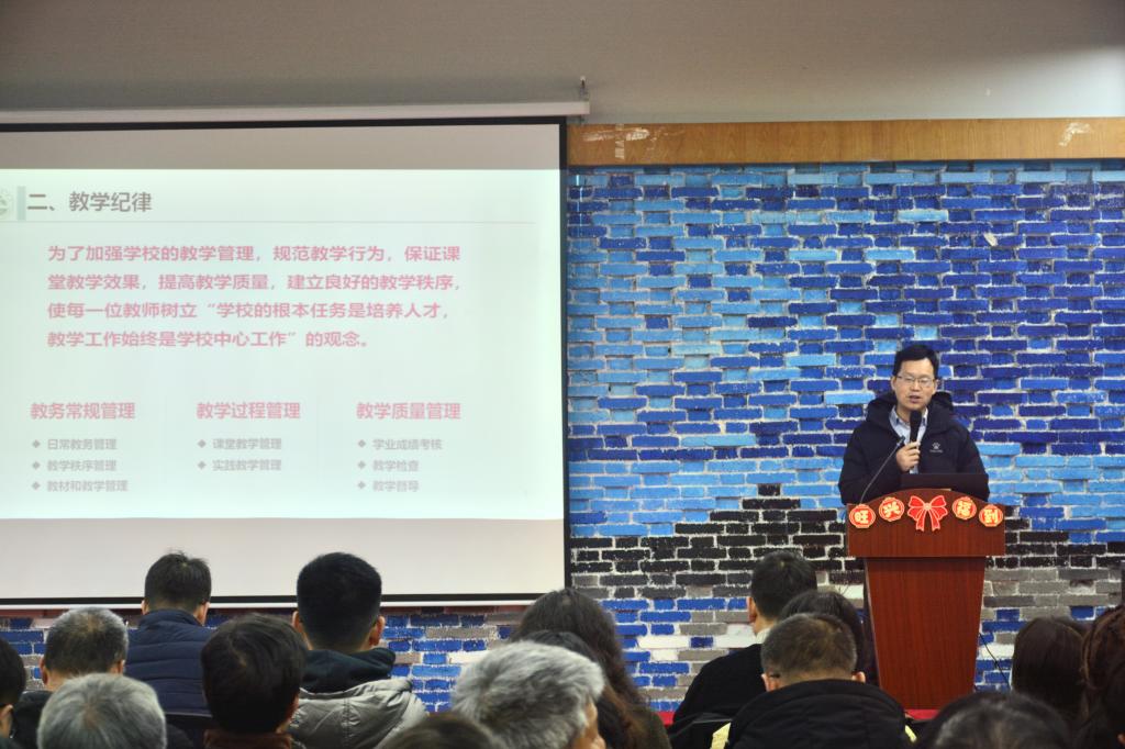 教务处代向阳副处长对教学事故风险点进行了详细解说,并针对性提出一系列防范措施。他指出,严抓教学纪律是为了规范教学行为、保证课堂教学效果、建立教学秩序、提高教学质量。他对公司教学纪律和教学事故进行政策解读,并分享了教学事故典型案例和防范措施,使每一位教师树立“公司的根本任务是培养人才,教学工作始终是公司中心工作”的观念。