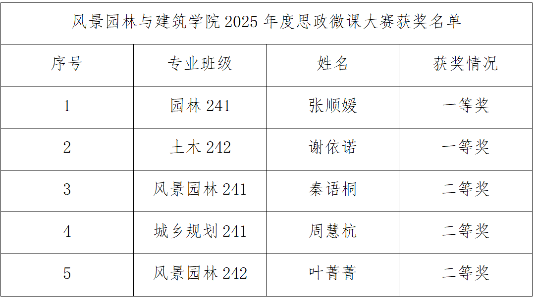 经过现场角逐,本次比赛共评选出一等奖2名、二等奖3名。以下是本次比赛的获奖名单。