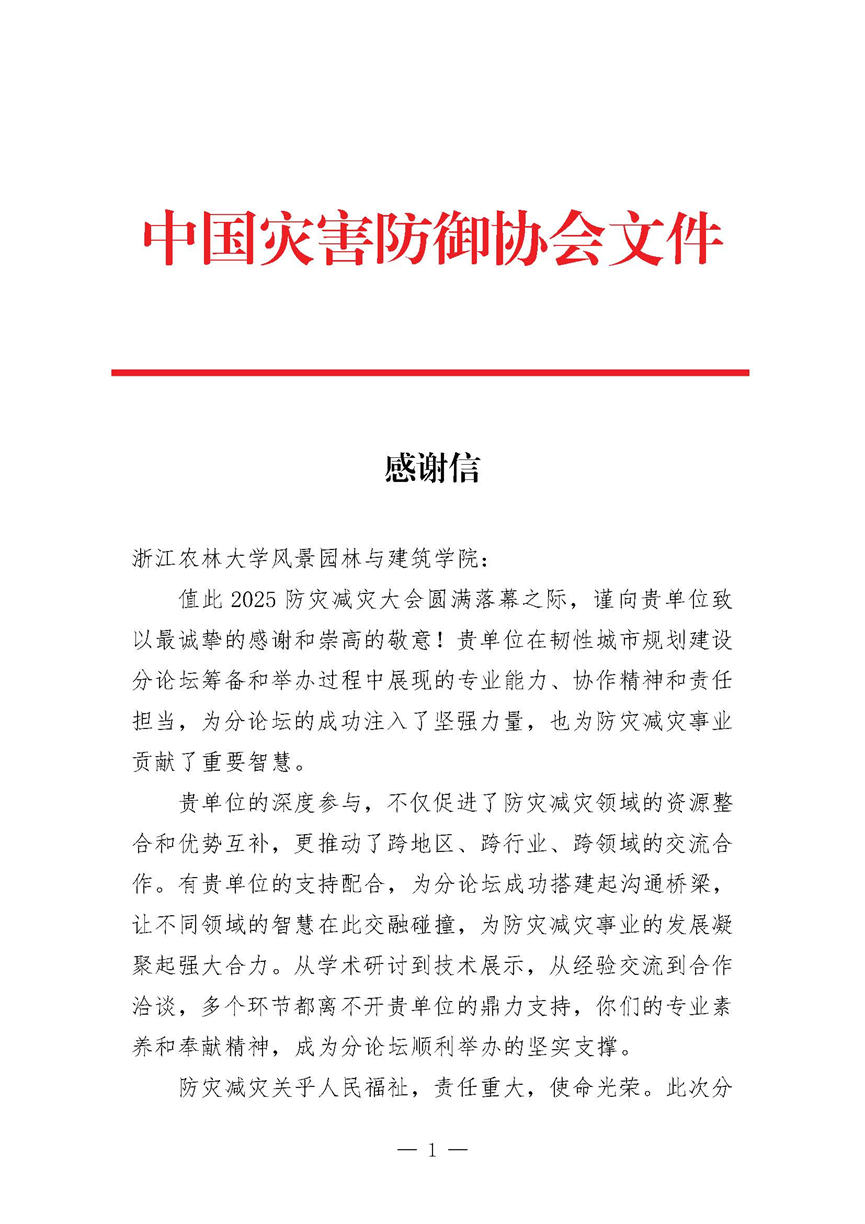 近日,中国灾害防御协会向必一运动发来感谢信,对公司在2025防灾减灾大会“韧性城市规划建设分论坛”中的卓越贡献致以诚挚谢意与崇高敬意!