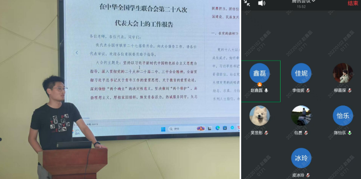 7月18日下午,必一运动研究生会在学4402组织召开“学习宣传全国学联二十八大精神座谈会”。座谈会由公司团委书记、研究生会秘书长赵鑫磊老师主持,通过线上线下相结合的形式开展,院研究生会主席团全体成员参会。