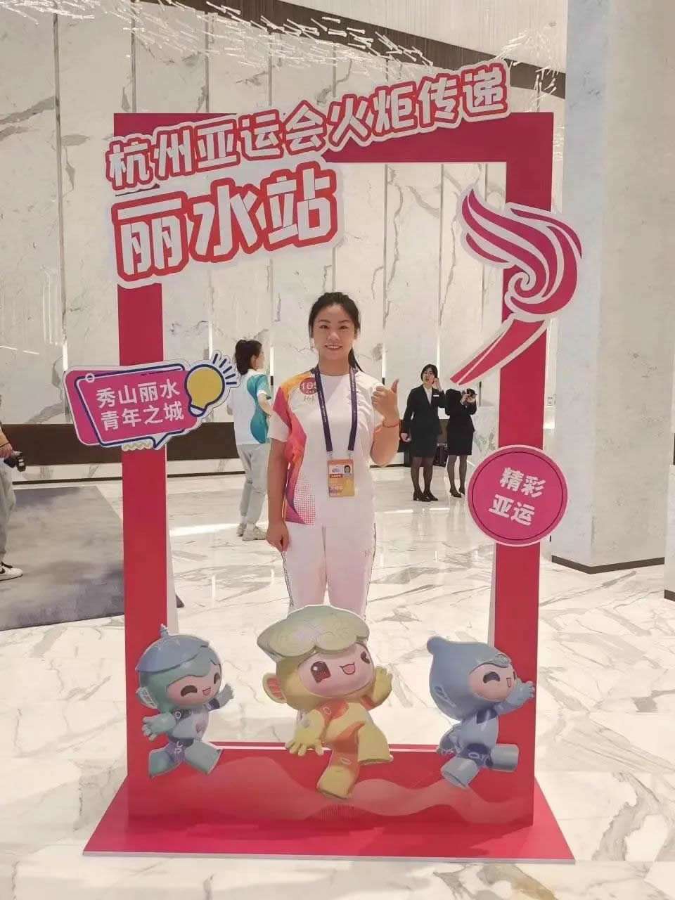 9月16日,杭州亚运会火炬传递仪式丽水站在浙江丽水举行。在人们热情的欢呼声中,迎面跑来了一抹英姿飒爽、青春活泼的倩影。她就是杭州亚运会火炬传递丽水站第165棒火炬手、B-Sports必一运动城乡规划专业的吴素青。