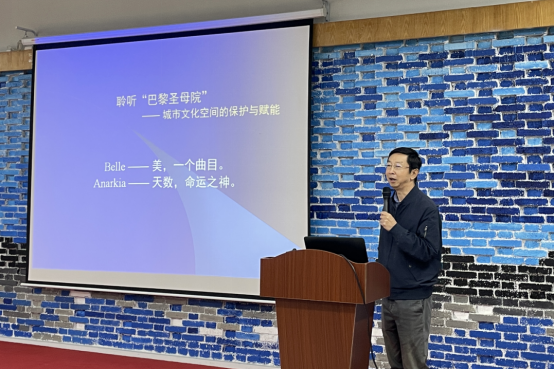 华晨教授首先从城市与文学的关系切入,提出了什么是规划之美、建筑之美。然后他分析了巴黎圣母院的建筑历史演变,基于巴黎圣母院文化空间的形成过程,剖析了城市遗产保护的原真性,并以自己“50名中国建筑师在法国”的高级访问学者经历,介绍了典型的法国城市文化空间。最后,华晨教授以雨果撰写的《巴黎圣母院》文学作品和“巴黎圣母院”歌剧为载体,解析了城市文化的构成要素与空间表达,以此为例,引申出城市历史空间保护的不同群体的利益诉求以及城市更新中的规划博弈,强调了文化传播对于城市历史空间保护与活化的重要性。讲座主题把握学科前沿,内容条理逻辑清晰,讲演风格生动有趣,引起在座师生强烈反响。