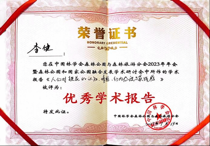 会议产生了中国林学会森林公园与森林旅游分会第五届理事会并颁布2023年度行业贡献奖。公司李健教授当选第五届理事会常务理事。