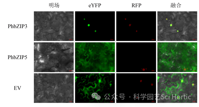 图5 PhbZIP3和PhbZIP5亚细胞定位