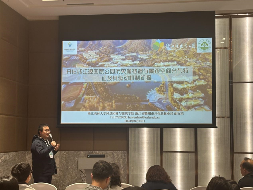 “国家公园与自然保护地”分会场报告环节,胡文浩做了题为《开化钱江源国家公园历史植被遗存景观空间分布特征及其驱动机制初探》的专题报告,并向与会专家介绍了近年来开化县古树名木保护所取得的突出成效,得到与会专家的一致好评。