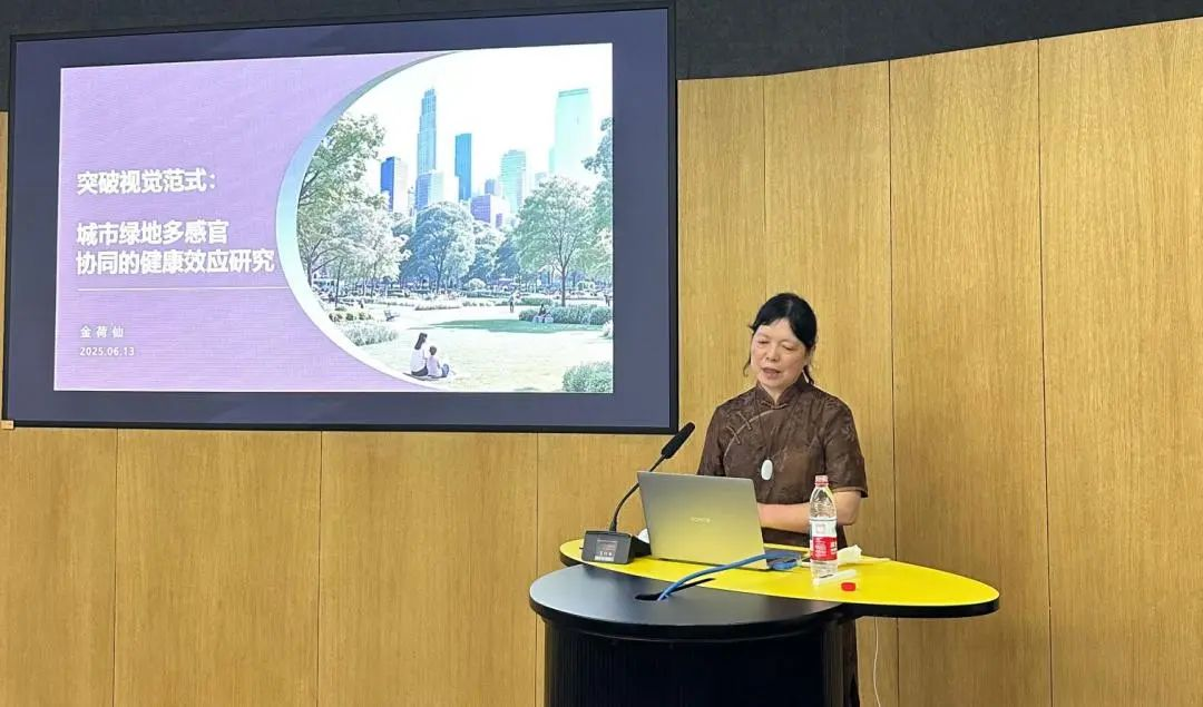 城市绿地如何超越“好看”,真正实现身心的“深度疗愈”?金荷仙教授还带来了题为《突破视觉范式:城市绿地多感官协同的健康效应研究》的学术讲座。她提出,面对城市化与自然灾害带来的身心健康挑战,需思考如何缓解、实现健康及打造可持续健康城市,并从“公园20分钟效应”切入,强调自然环境对心理和身体健康的积极作用。金教授指出,当前城市绿地研究多聚焦于视觉感知,而忽视了人类完整的五感系统。她呼吁突破传统视觉研究范式,重构“多感官耦合”的生态对话,全面理解自然对人类的影响。金教授通过丰富的案例和前沿的研究方法,展示了多感官研究在城市绿地健康效应中的广阔前景。