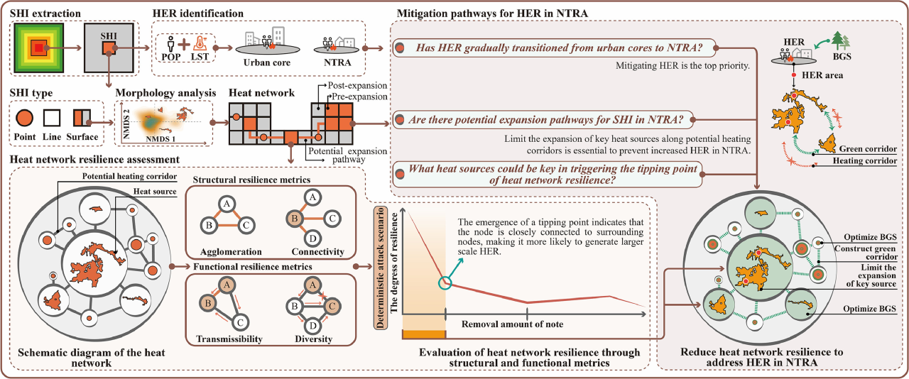 研究以富春江流域为研究区,首次将热网络韧性概念引入城乡热暴露风险研究,通过形态空间格局分析与复杂网络理论,识别热岛扩张路径与关键管控节点。