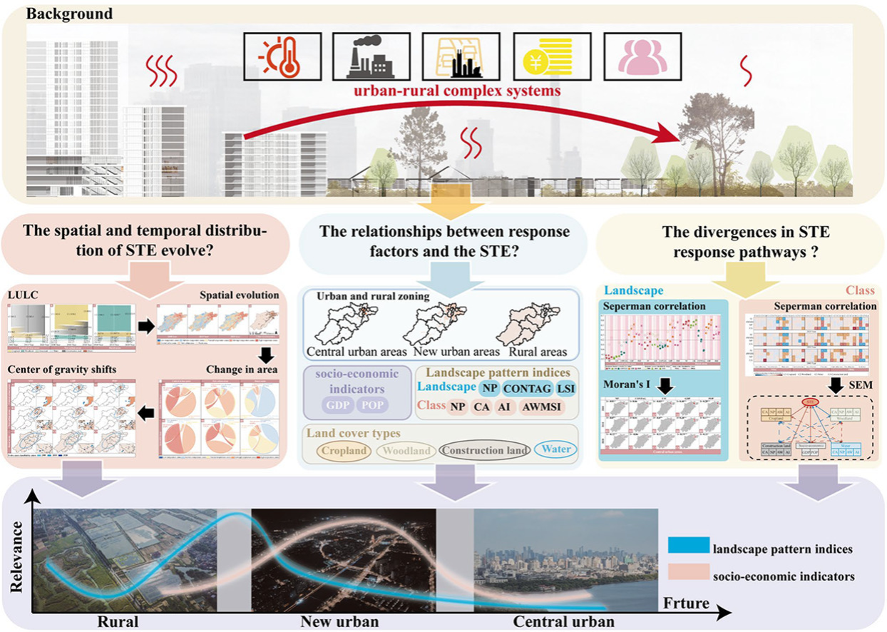 研究以杭州为典型案例,通过标准差椭圆、空间自相关、结构方程模型等方法,剖析2000-2020年城乡复杂系统地表热环境的演化路径与驱动机制。