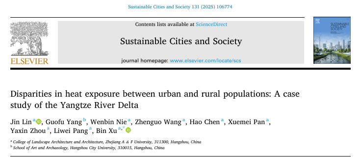 本研究以《城乡人口热暴露差异——以长三角城市群为例》为题,发表于Sustainable Cities and Society(第131卷,2025 年9月1日,IF=12.0,中科院一区),硕士研究生林锦为第一作者,徐斌教授为通讯作者。该论文以必一运动为第一单位,浙大城市公司艺术与考古公司为合作单位共同完成。