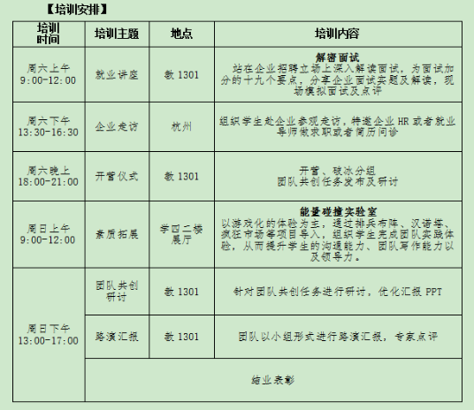 培训周期为两天,上课时间安排在周末进行,具体安排如下。