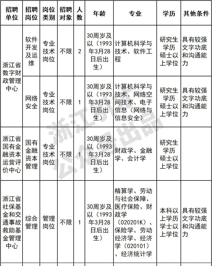 本次公开招聘报名和笔试工作委托浙江省人事考试院组织实施,其他环节工作由省财政厅组织。