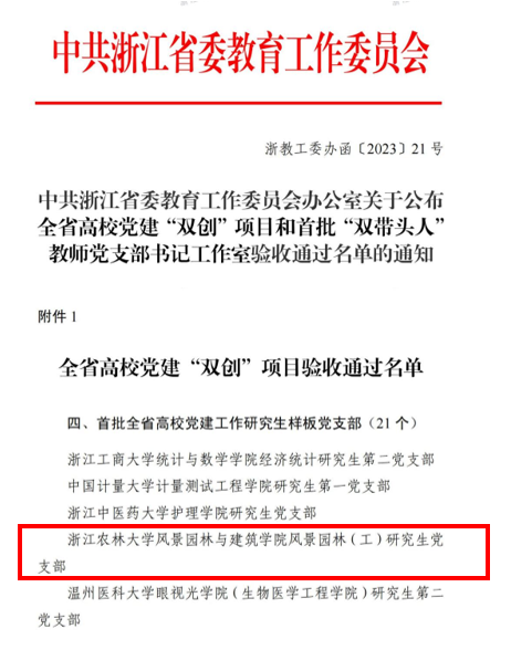 近日,省委教育工委办公室公布了第二批全省高公司党建“双创”项目和首批“双带头人”教师党支部书记工作室通过验收名单。公司风景园林(工)研究生党支部通过首批全省高公司党建工作研究生样板党支部验收。