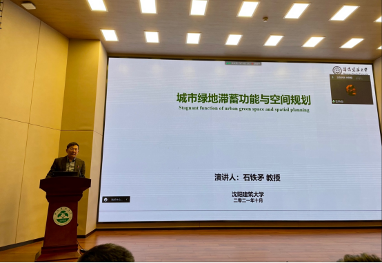 沈阳建筑大学的石铁矛教授首先提出国土空间规划下水韧性的背景,认为城市水韧性是指在不确定事件引起的压力下,城市水系统应对和恢复的综合能力。在此基础上,石教授提出滞蓄效能评价的思路,介绍了目前已有的多种量化方法与城市绿地的滞蓄作用,并以沈阳市为例,进行实证分析,阐述不同下垫面径流系数、效能差异分析,并探讨了开发年限、土壤类型、绿地规模、绿地分布等因素对雨水的滞蓄效能的影响。研究结论认为绿地发挥的作用明显由于裸地和不透水地面,而绿地的地表覆盖类型将直接影响滞蓄效能。