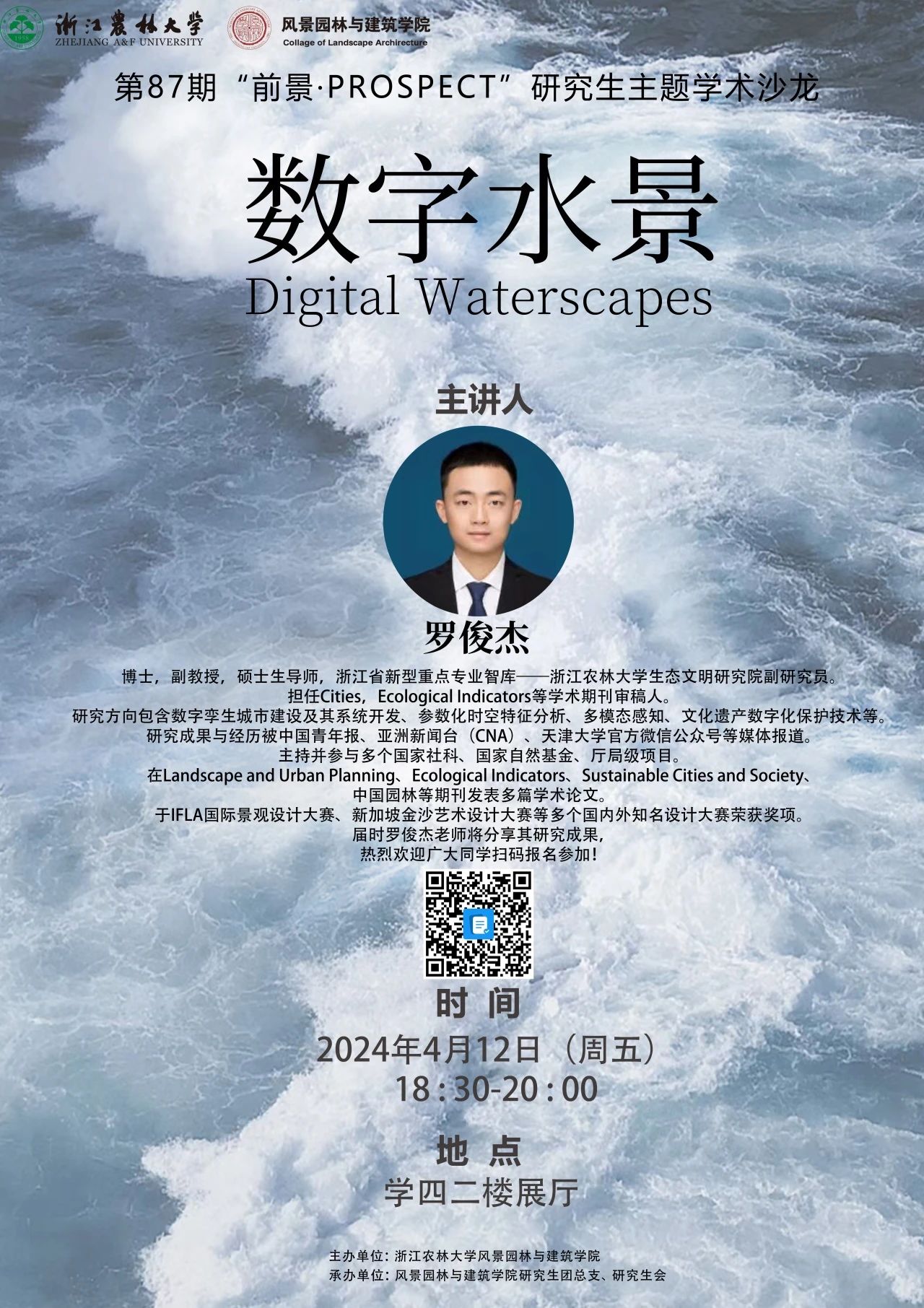罗俊杰,博士,副教授,硕士生导师,浙江省新型重点专业智库——浙江农林老员工态文明研究院副研究员。担任Cities,Ecological Indicators等学术期刊审稿人。研究方向包含数字孪生城市建设及其系统开发、参数化时空特征分析、多模态感知、文化遗产数字化保护技术等。研究成果与经历被中国青年报、亚洲新闻台(CNA)、天津大学官方微信公众号等媒体报道。主持并参与多个国家社科、国家自然基金、厅局级项目。在Landscape and Urban Planning、Ecological Indicators、Sustainable Cities and Society、中国园林等期刊发表多篇学术论文,于IFLA国际景观设计大赛、新加坡金沙艺术设计大赛等多个国内外知名设计大赛荣获奖项。